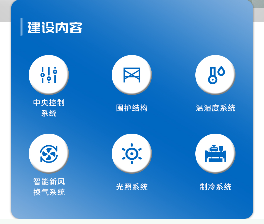 | 1 | 植物生長室 | 10~40 | 45~90 | 0~30000 | 通過室內環境模擬,研究植物生長全周期變化,根據用戶栽培作物高度科學合理定制排布植物培養架或頂置光源 |
